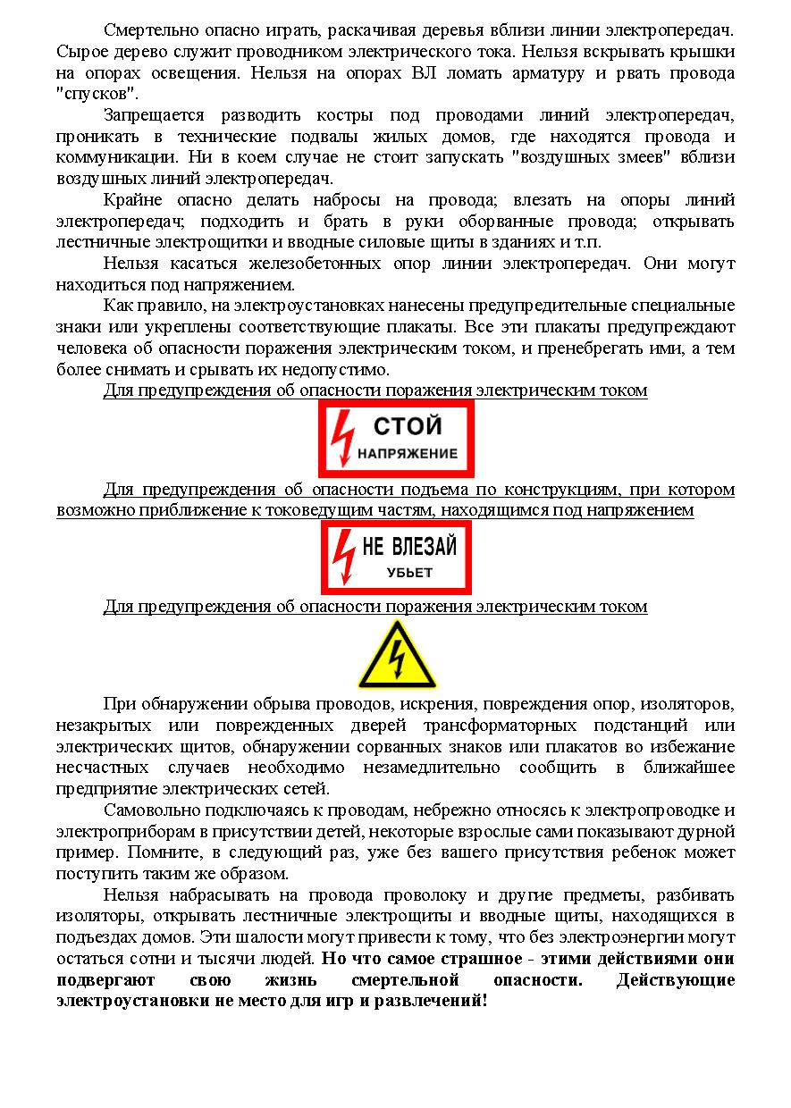 > ПАМЯТКА ПО ЭЛЕКТРОБЕЗОПАСНОСТИ